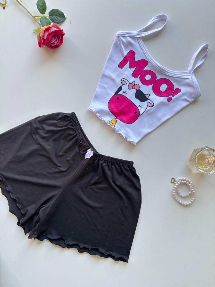 Babydoll Lara Slim Vaquinja moo preto
